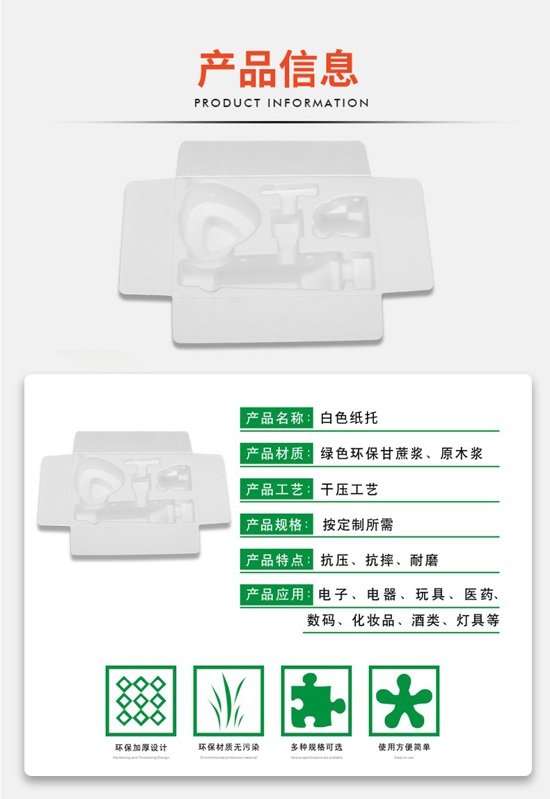 材质:绿色环保甘蔗浆、原木浆
